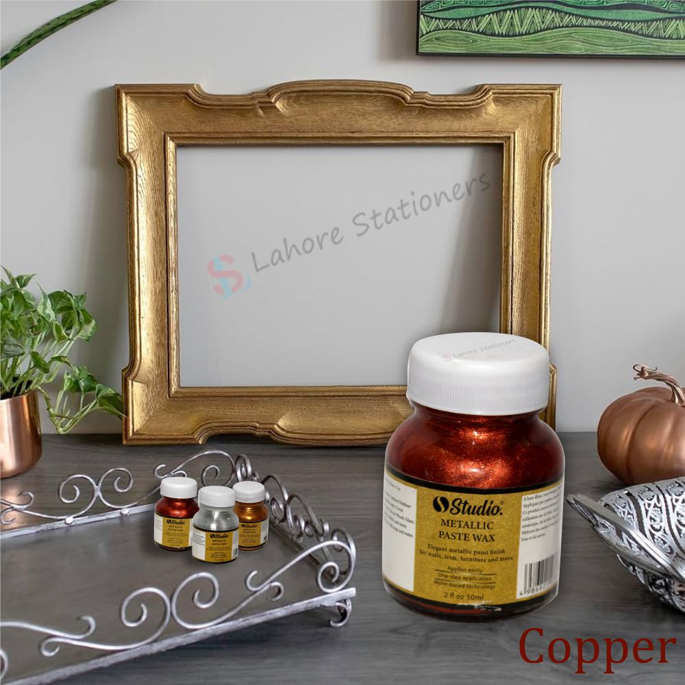 - This Studio Metallic Paste Wax is easy to apply and can be used on a variety of metal surfaces, including brass, copper, silver, gold, and steel.